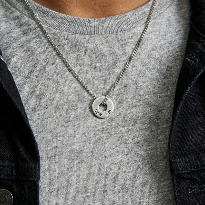 Both the chain and the custom washer are crafted from solid, high-quality 304L stainless steel. It is hypoallergenic, incredibly durable, and safe for sensitive skin.